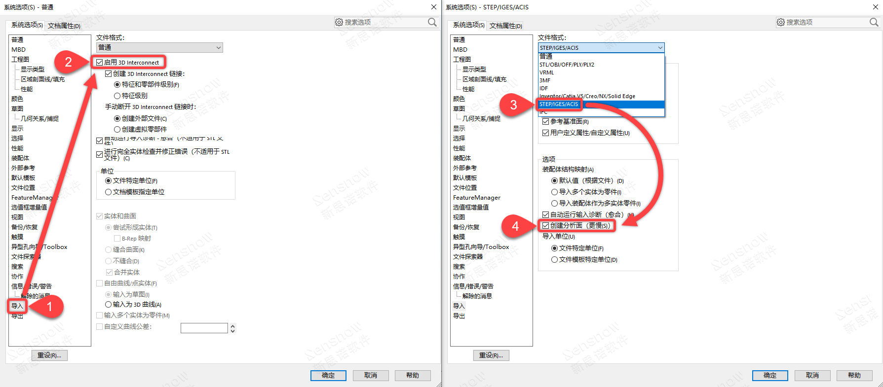 对于我们 SOLIDWORKS 用户而言仅仅是使用模型,默认输入精度足够我们使用了,也就无需输入原始模型的分割周期面。我们可以在 SOLIDWORKS 的导入选项中去将被分割的周期面愈合为一个面来消除这种现象,操作步骤如下: