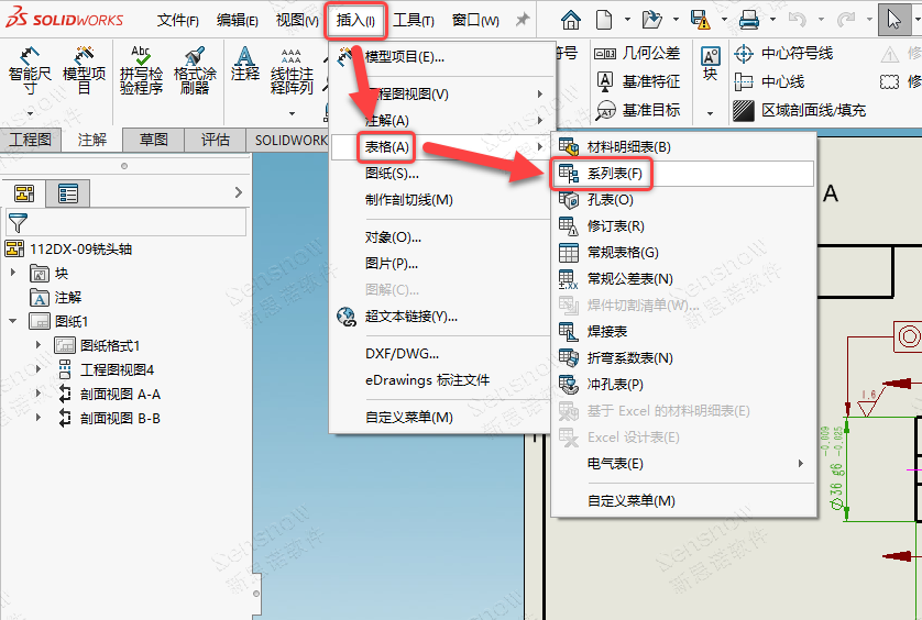 在 SOLIDWORKS 2025 SP 1 版本中增加了专门的“系列表”功能,可在:插入下拉列表 -> 表格 -> 系列表中进行访问。